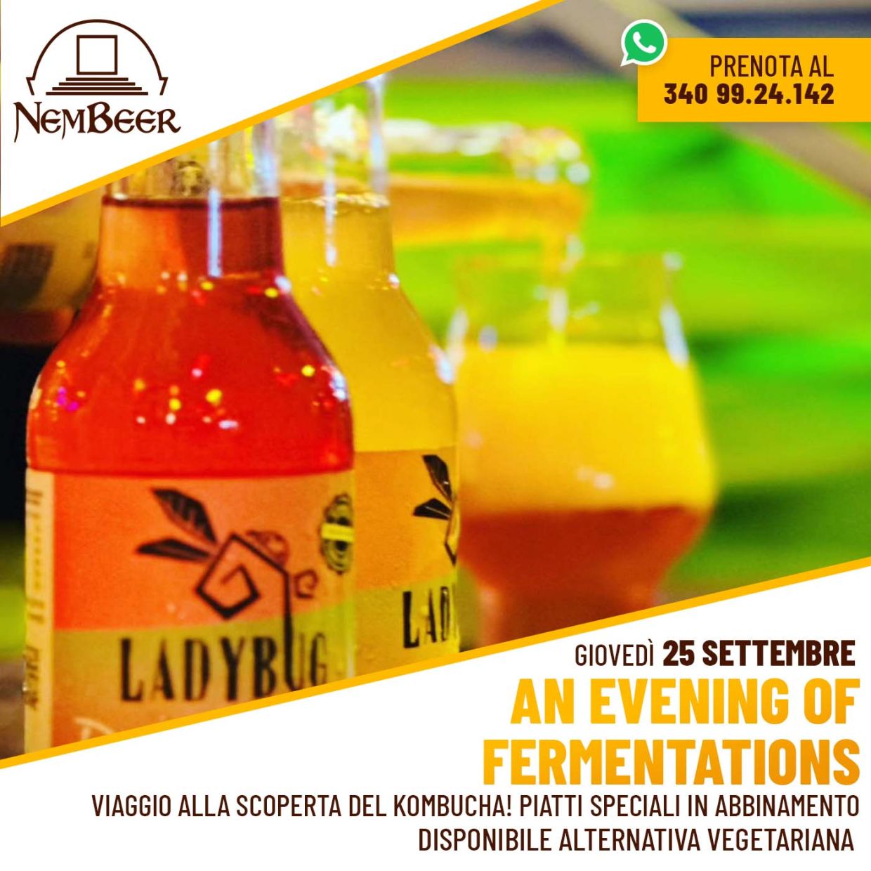 Il 25 Settembre, dalle ore 19.30, 𝗔𝗡 𝗘𝗩𝗘𝗡𝗜𝗡𝗚 𝗢𝗙 𝗙𝗘𝗥𝗠𝗘𝗡𝗧𝗔𝗧𝗜𝗢𝗡𝗦, in compagnia di Caterina, fondatrice di ladybug_kombucha proporremo quattro portate abbinate, appunto, alla Kombucha, fermentato di tè nero e tè verde dal sapore piacevolmente acidulo e super super rinfrescante ma, sopratutto, ANALCOLICO!